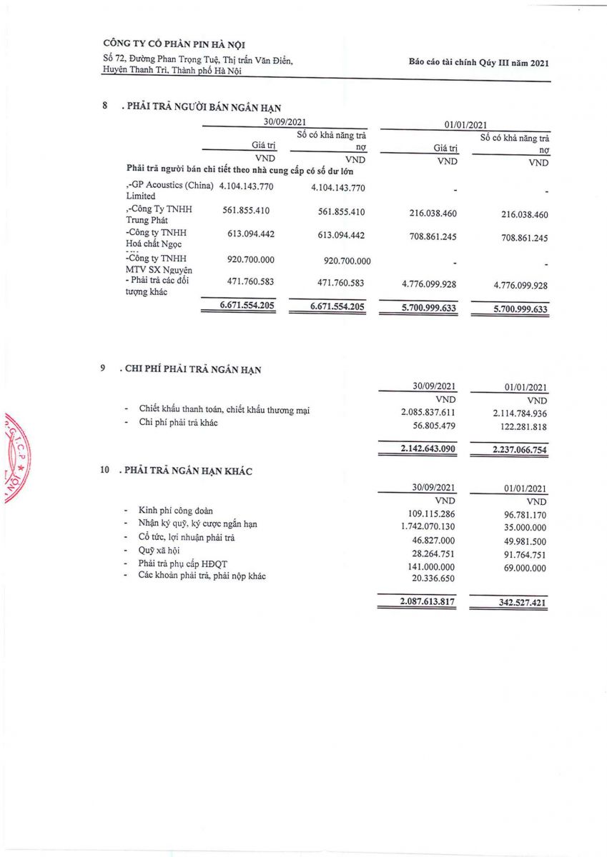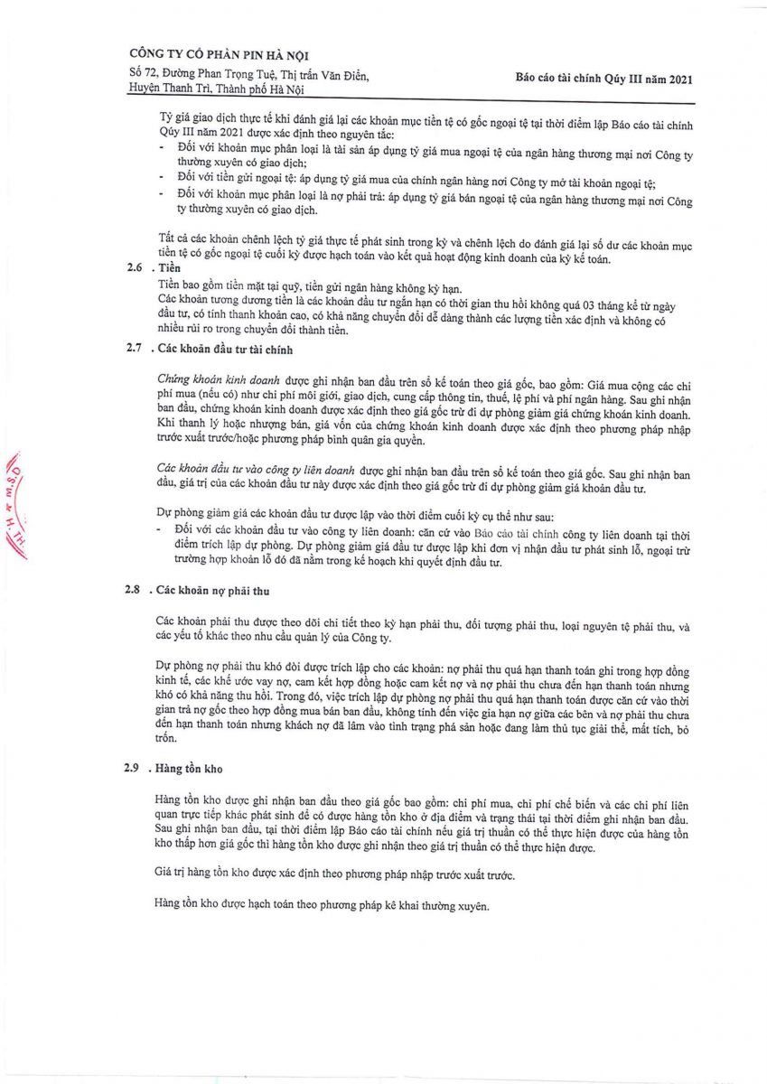 Thông tin tài chính » Báo cáo tài chính văn phòng quý 3 năm 2021